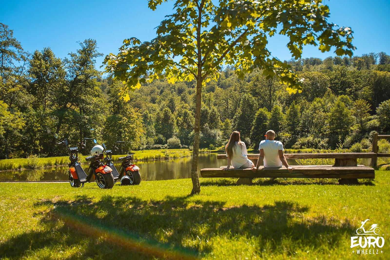 Auf einem E-Chopper kann man lautlos die Gegend erkunden. Die elektrischen Fahrzeuge können über den untenstehenden Link gebucht werden und dürfen von einer erwachsenen Person gefahren werden, die über einen Führerschein verfügt und einen Helm trägt. Auf dem Rücksitz darf außerdem ein Kind im Alter von 8 bis 15 Jahren mitfahren, sofern dieses ebenfalls einen Helm trägt.