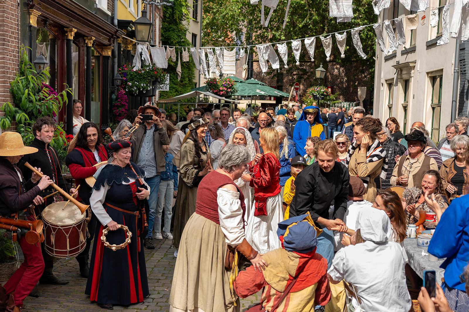 During the Hanzefeest, the historic city center of Doesburg provides a beautiful backdrop for a medieval festival featuring old crafts, live animals, market stalls, encampments, and other medieval scenes. On this day, we go back in time. Hundreds of extras in medieval clothing shuffle through the streets. Imagine yourself in the Middle Ages for a day!